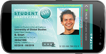 - Galiojantis virtualus ISIC pažymėjimas turi besikeičiantį neskaidrų ISIC logotipą.